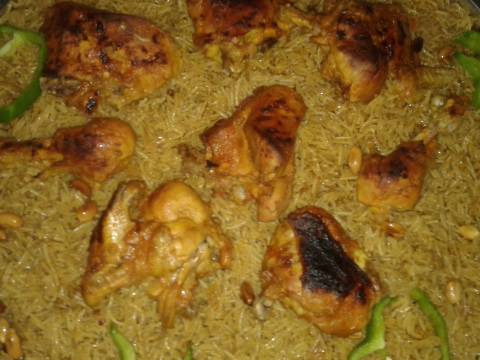 ويحمر الدجاج بالفرن : يدهن بملعقه صلصه مع قليل من المرق والتوم ويوضع بالفرن.